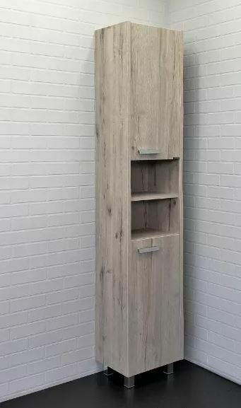 Напольная шкаф-колонна с двумя распашными створками и двумя пространствами для открытого хранения.