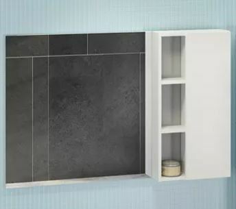 Зеркало-шкаф с одной створкой и пространствами для открытого хранения. Створка оснащена системой плавного закрывания. За створкой, одна горизонтальная полка. Высококачественное зеркальное полотно с амальгамой на основе серебра.