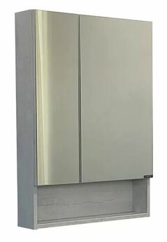 Створки оснащены петлями с плавным закрыванием. Высококачественное зеркальное полотно с амальгамой на основе серебра. Обе боковые створки зеркала открываются наружу. За широкой створкой две горизонтальные полки, за узкой одна. На нижней внешней полке можно расположить невысокие принадлежности для умывания.