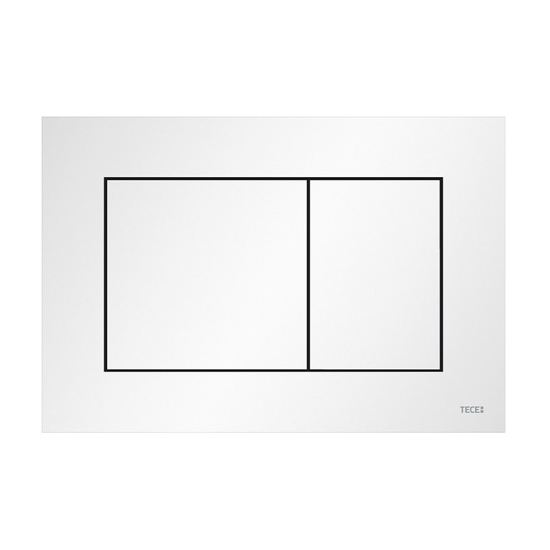 Панель смыва для смывных бачков TECE, фронтальная или верхняя установка. Плоская пластиковая панель смыва, клавиши с резиновыми накладками с обеих сторон. В комплект входят толкатели и крепежные элементы. Подходит для установки на уровне стены вместе с монтажной рамкой унитаза и дистанционной рамкой TECEnow. Совместима с контейнером для гигиенических таблеток.