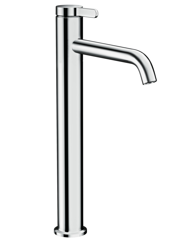 Cмеситель для раковины чаши AXOR ONE, дизайн Barber Osgerby Высота излива до центра аэратора 255 мм. Подходит для раковин-чаш со средней высотой борта (до 19-20 см), устанавливается на столешницу. За счет расположения аэратора под углом 25° струя бьет вперед на 2-3 см, что обеспечивает комфортное мытье рук.