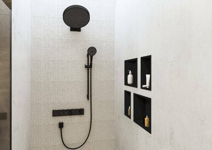Для установки необходима скрытая часть 15310180, которая монтируется до укладки плитки. Максимальный расход воды составляет 19,6 л/мин Лёгкая и точная настройка температуры за счёт надёжного термостатического картриджа Hansgrohe.