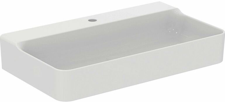 умывальник 80x45 см · Без отверстия перелива · 1 отверстие под смеситель · Монтаж на стене или с колонной