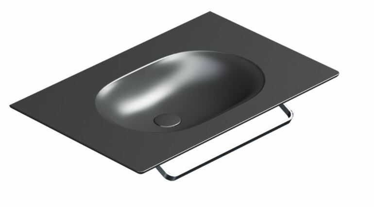 Подвесная раковина крепится к стене (крепеж в комплекте), ее можно комбинировать с открытой консолью или тумбой. Хромированный полотенцедержатель – опция по желанию, приобретается дополнительно.