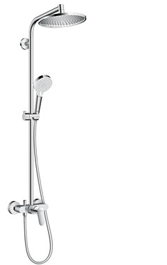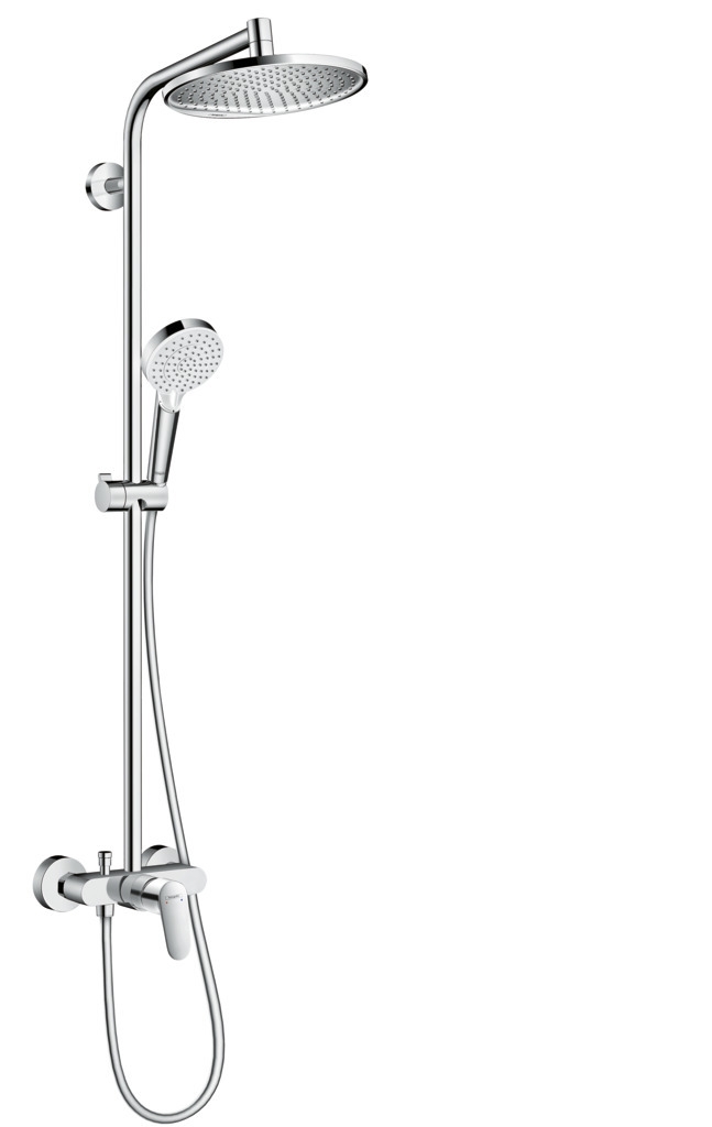 Однорежимный круглый верхний душ диаметром 24 см. Простая и надежная конструкция обеспечивает равномерное распределение воды по всему периметру душа. Верхний душ сделан из пластика, крепится на шарнирном подсоединении (поворачивается на держателе). Максимальный расход воды при 3 барах: 15 л/ мин. Минимальное рабочее давление 1,5 бара. Труба, на которую крепится верхний душ, может быть укорочена по высоте.