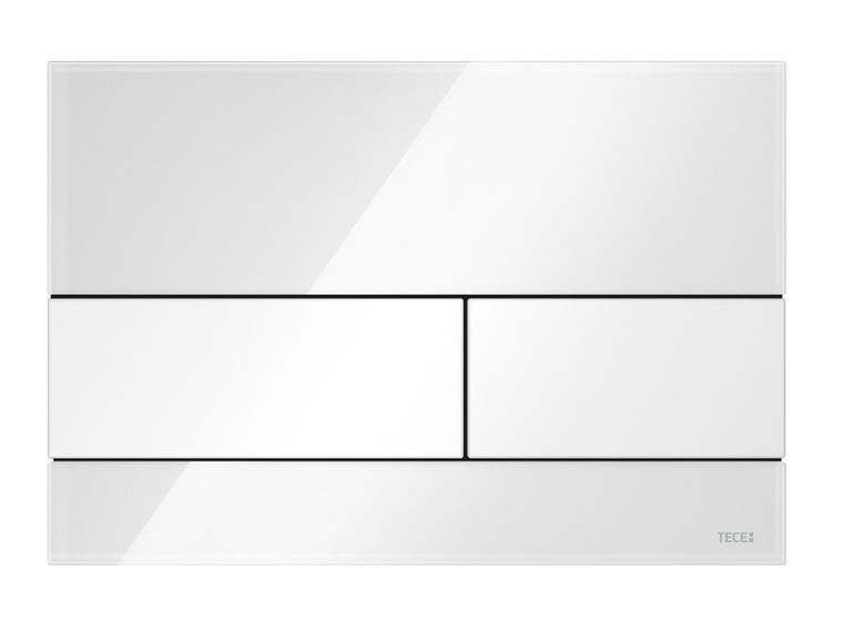 Панель смыва для смывных бачков TECE, фронтальная или верхняя установка. Плоская стеклянная панель смыва с двумя установленными на пружинах клавишами привода кулисного типа. Подходит для монтажа на уровне стены вместе с монтажной рамкой унитаза для монтажа на уровне стены (например, арт. 9240649). Совместима с контейнером для гигиенических таблеток.
