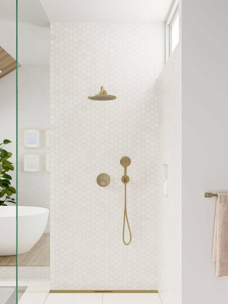 Hansgrohe Showerselect термостат с двумя запорными вентилями, шлиф. бронза 15743140