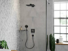 Для установки необходима скрытая часть IBOX, которая монтируется до укладки плитки. Расход воды составляет 25 л/мин Лёгкая и точная настройка температуры за счёт надёжного термостатического картриджа Hansgrohe.