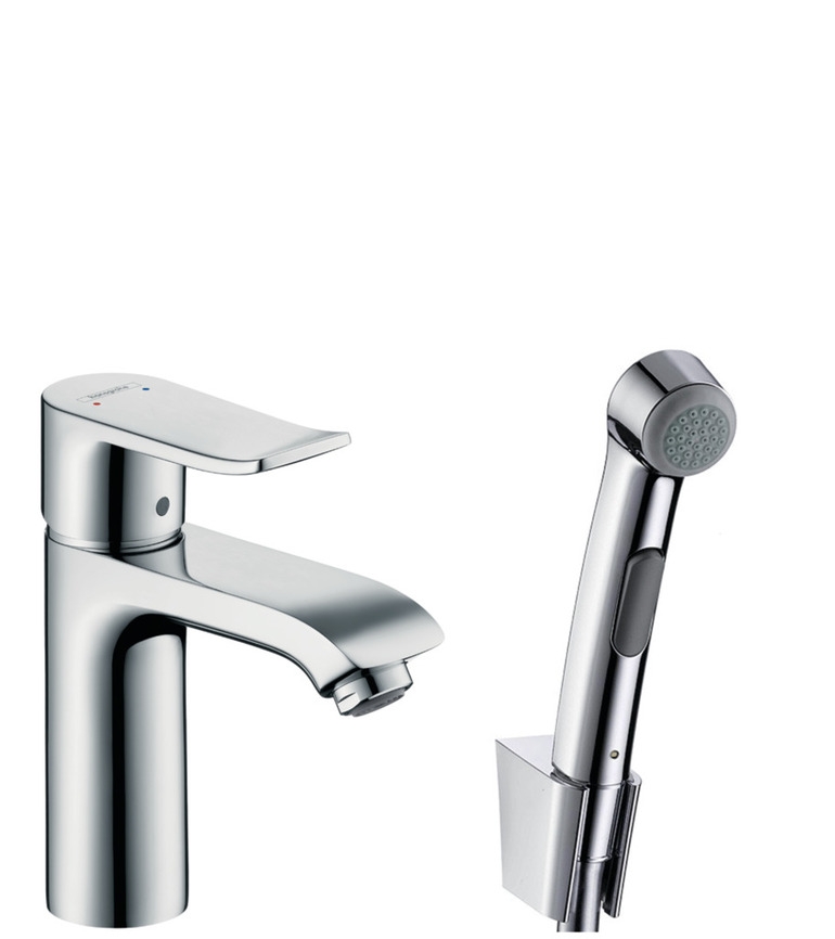 Hansgrohe Metris смеситель для раковины 110 мм с гигиеническим душем, хром 31285000