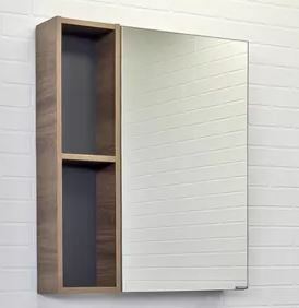 Зеркало для ванной комнаты с одной створкой и пространством открытого хранения. Створка оснащены петлями с плавным закрыванием. Высококачественное зеркальное полотно с амальгамой на основе серебра.