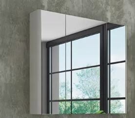 Зеркальное высококачественное полотно с амальгамой на основе серебра. Створки мебельного элемента оснащена петлями с функцией плавного закрывания. За центральной створкой две горизонтальные полки, за боковыми - по одной полке.