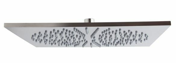 Тропический душ итальянской фабрики CARLO FRATTINI (FIMA) Верхний душ квадратной формы выполнен полностью из нержавеющей стали, диаметр 30 см. Форсунки выполнены из мягкого силикона, легко очищаются от извести.