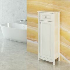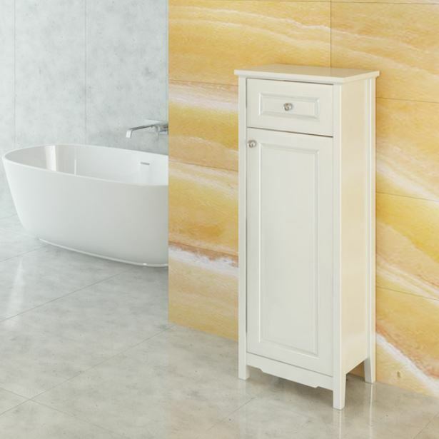 Мебель для ванной комнаты COMFORTY Полуколонна отличное решение для хранения разных предметов необходимых в ванной комнате. За дверцей две горизонтальные полки. Фасады покрыты белой глянцевой эмалью.