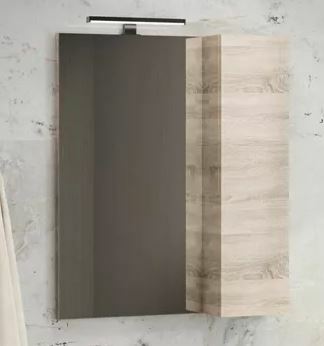 Створка оснащена петлями с плавным закрыванием. Высококачественное зеркальное полотно с амальгамой на основе серебра. Мебельный элемент из влагостойкого ДСП цвет дуб сонома. За дверцей две дополнительные полки. Зеркало-шкаф универсальное, может быть подвешено в правом и левом исполнении.