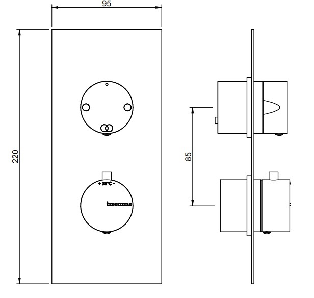 Встраиваемый термостат для 2 потребителей итальянской фабрики TREEMME.
