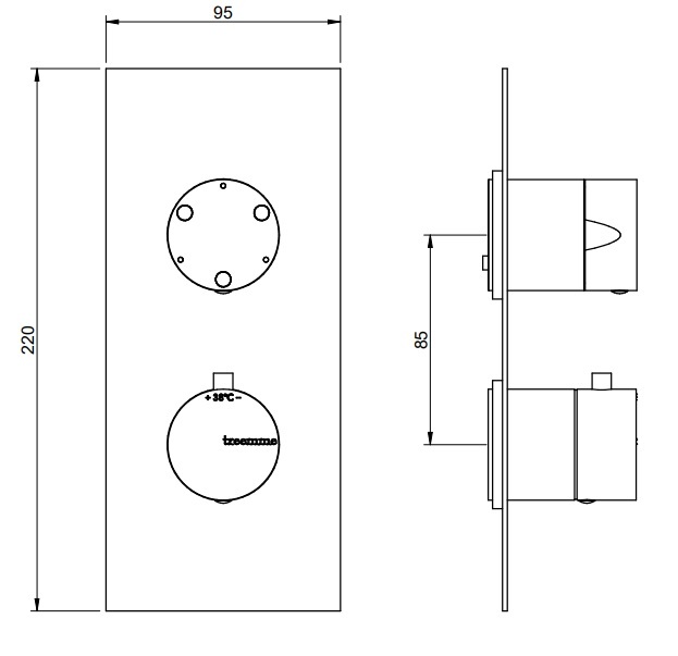 Встраиваемый термостат для 3 потребителей итальянской фабрики TREEMME.