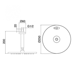 Верхний душ 25 см с потолочным держателем итальянской фабрики TREEMME. Душ сделан из латуни, форсунки выполнены из силикона и легко очищаются от извести. Душ крепится на шарнирном соединении. Держатель с потолка длиной 200 мм в комплекте.