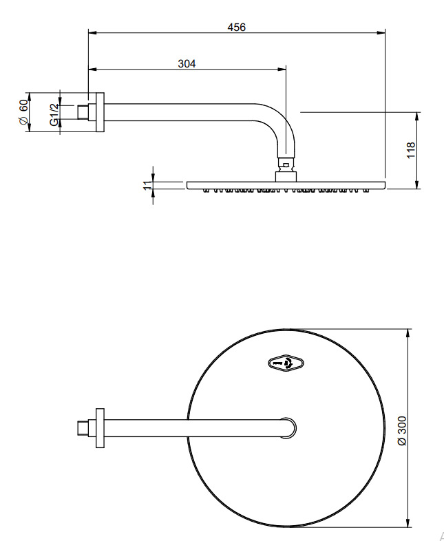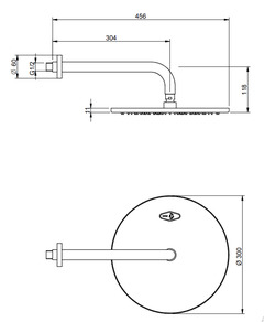 Верхний душ 30 см с держателем из стены итальянской фабрики TREEMME. Душ сделан из латуни, форсунки выполнены из силикона и легко очищаются от извести. Душ крепится на шарнирном соединении. Держатель из стены длиной 304 мм в комплекте.