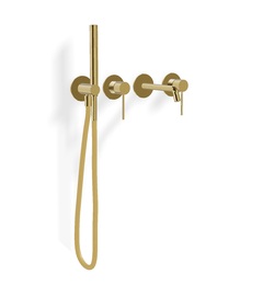 Встраиваемый смеситель для ванны из стены. Длина излива до центра аэратора 176 мм. За счет расположения аэратора под углом струя бьет вперед. Ручной душ и шланг в комплекте. Максимальный расход воды при 3 барах: 22 л/мин