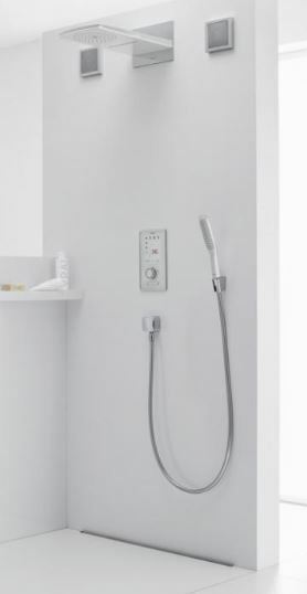 В хромированном цвете душ доступен в 2 исполнениях на выбор – с белым пластиком по центру или с хромированным.