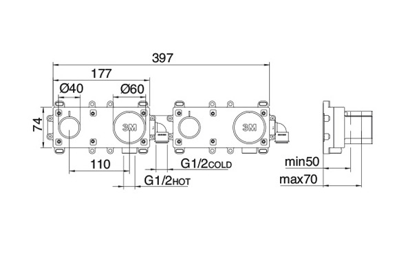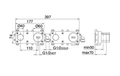 Скрытая часть для установки встраиваемого смесителя. Рекомендуемая глубина установки 50-70 мм.